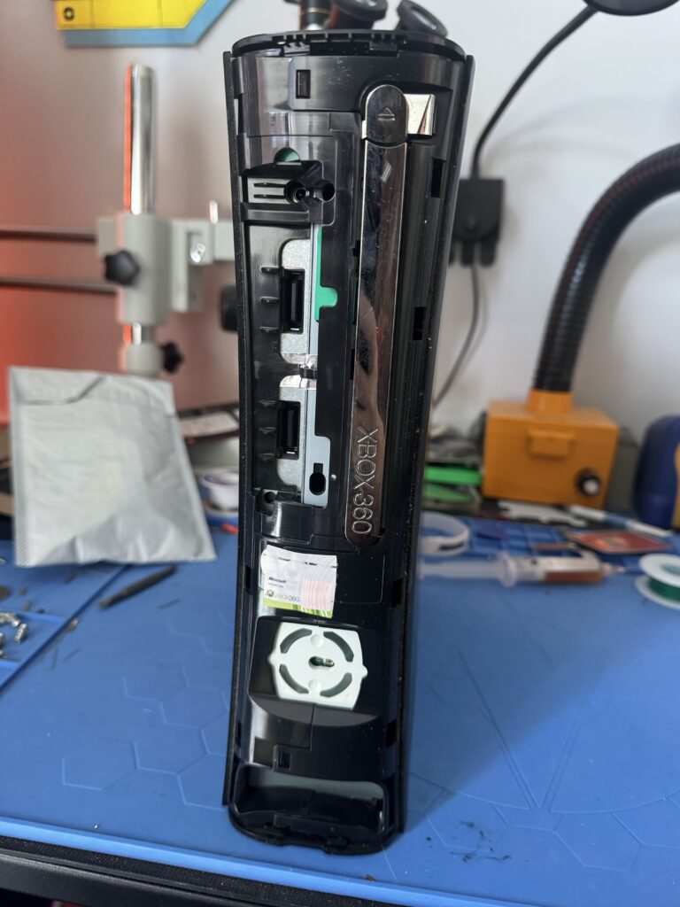 I’d never done this before so there was a LOT of research and headscratching involved. Let’s start at the top, with opening up the 360.