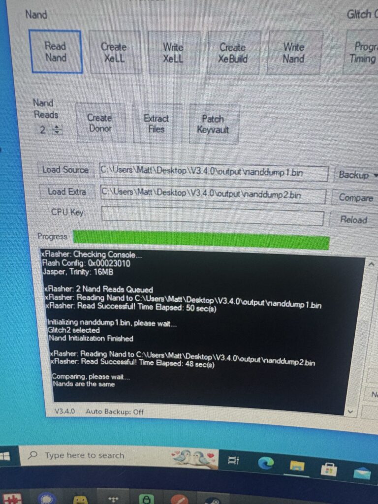 This is most of the hard work out of the way, but there’s still plenty of time to brick the console if you’re not careful! The time has now come to partially flash the NAND so we can boot into Xell and get the CPU key for our custom NAND image.